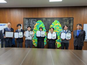 制作にあたった九州産業大学芸術学部の星野研究室を10月30日に訪問し、研究室の皆さんに感謝状を贈呈しました。