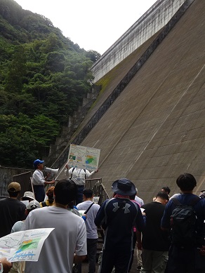 筑後川上流域の日田市大山町において、水源林の大切さを学ぶとともに、上下流域の人々の交流と親睦を深めることを目的とした、おおやま水源林育林活動『ひと山まるごとガーデニング』が開催され、大山ダム見学や下草刈り、交流会が行われました。