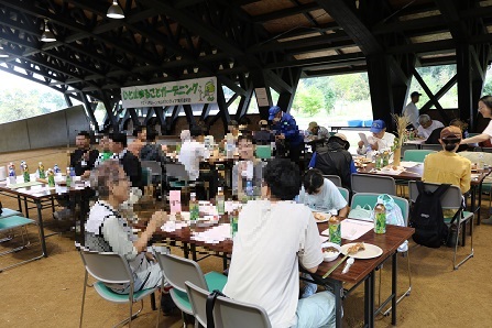 下草刈り後の昼食・交流会では、地元の美味しい料理に参加者が舌鼓を打たれていました。