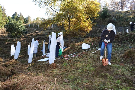 植樹作業は保護カバーを掛けて完成 |