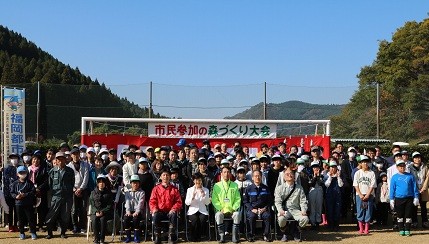 日田市では、森林の持つ地球環境保全や水源かん養、土砂災害防止などの公益的機能を守り育てるとともに、上下流域の住民同士の交流と親睦を深めることを目的として『市民参加の森づくり大会』を開催しています。